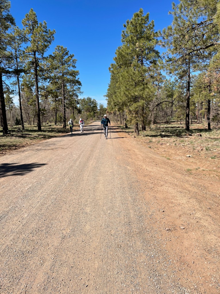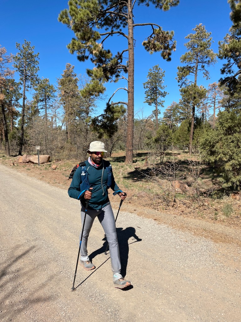 I reached Cinder pit by around 6:45 AM with plenty of time for cutoff. I filled in water, ate banana pan cakes and pressed on. After going for a half a mile or more, I realized I forgot my trekking poles at the aid. I had to run back to the aid to get my trekking poles. Lost some time but this was irrelevant if I look at 121 hours of my overall time. I started feeling sleepy and as I entered that mazed forest before Fort Tuthill, I felt even more sleepy. I could not find a rock or any place where I could catch a trail nap. I was also feeling little disoriented with loss of direction as to which way I was moving. I was constantly checking my gaia maps and this whole section was very frustrating to me despite being flat and absolutely runnable. Initially I thought I would move in and out of this aid in just 15 mins but when I reached Fort Tuthill in the middle of the day, I felt like catching a nap of 30-60 mins would make me feel better. Another hot day!! Pavan woke me up after 40 mins or so, I changed my clothes, checked my feet with the medic (they were all good), changed socks and moved on. Next section to Walnut canyon was mostly flat (I was told) and runnable but it was super long and very relentless. First 3-4 miles went well but then I started feeling very sleepy and I started having hallucinations for the first time. I thought I was going in circles. I could see many of those wooden caricatures as human or animal figures.