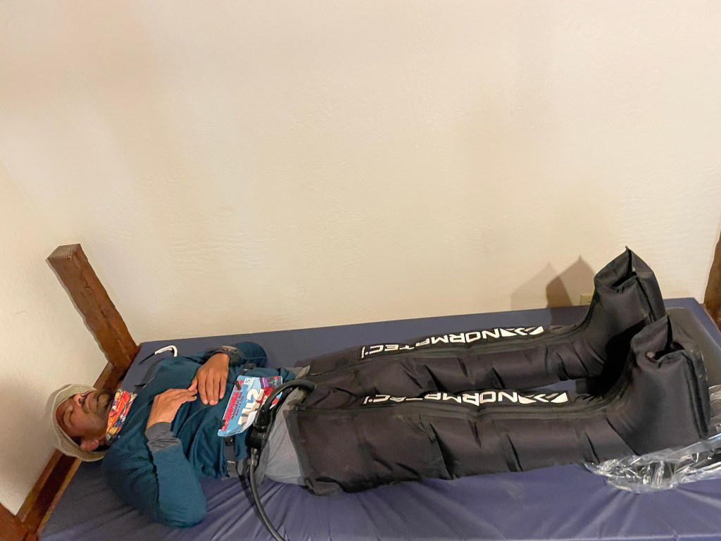 My feverish feeling had gone away by then drinking any fluid or eating/gulping was still painful. I had my left heel and fascia started bothering me with every leg turnover by then and it was getting painful with every step. I thought it must be plantar fasciitis which is acting. In my regular running, I could stave off PF by raising legs and wearing compression sleeves but here there was no long sleep or recovery.