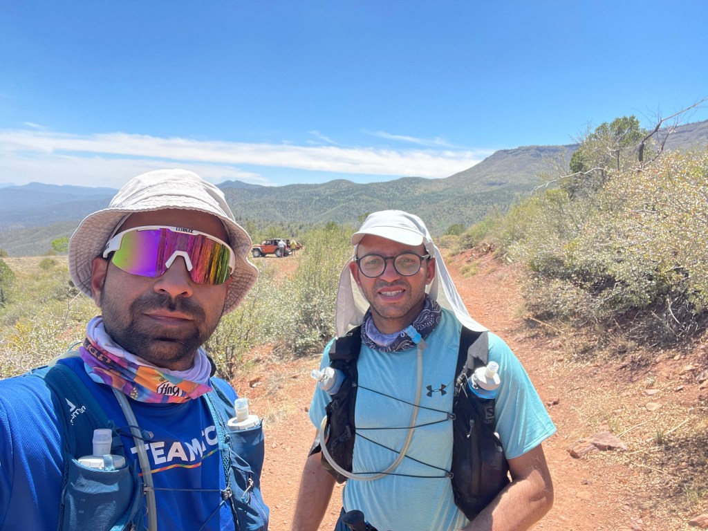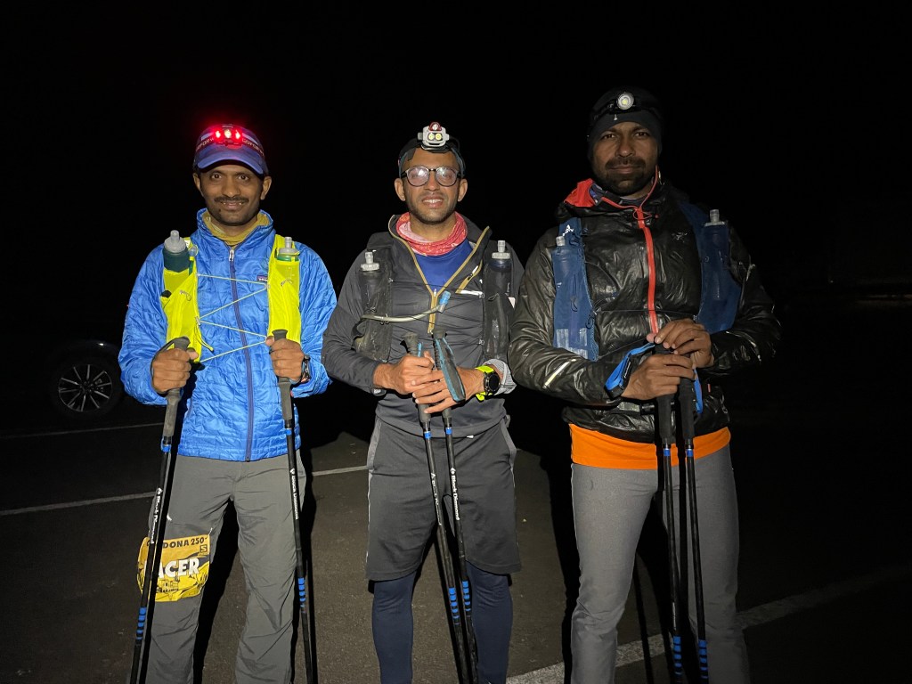 Talking about mental part – I wasn’t able to visualize the entire distance and race. We rehearsed by going over the course profile but couldn’t visualize our sleep, breaks etc. so we decided to approach as we go. I had two others of my friends join in racing cocodona – Kaushik and Bipul. My running philosophy has been “Run with group but race alone” and I had not taken any pacers or crew before in my 100 milers. Kaushik insisted me to take support from crew. I agreed to take crew support, but no pacers and I am glad I gladly took crew support. Without crew, this race would have been immensely difficult.